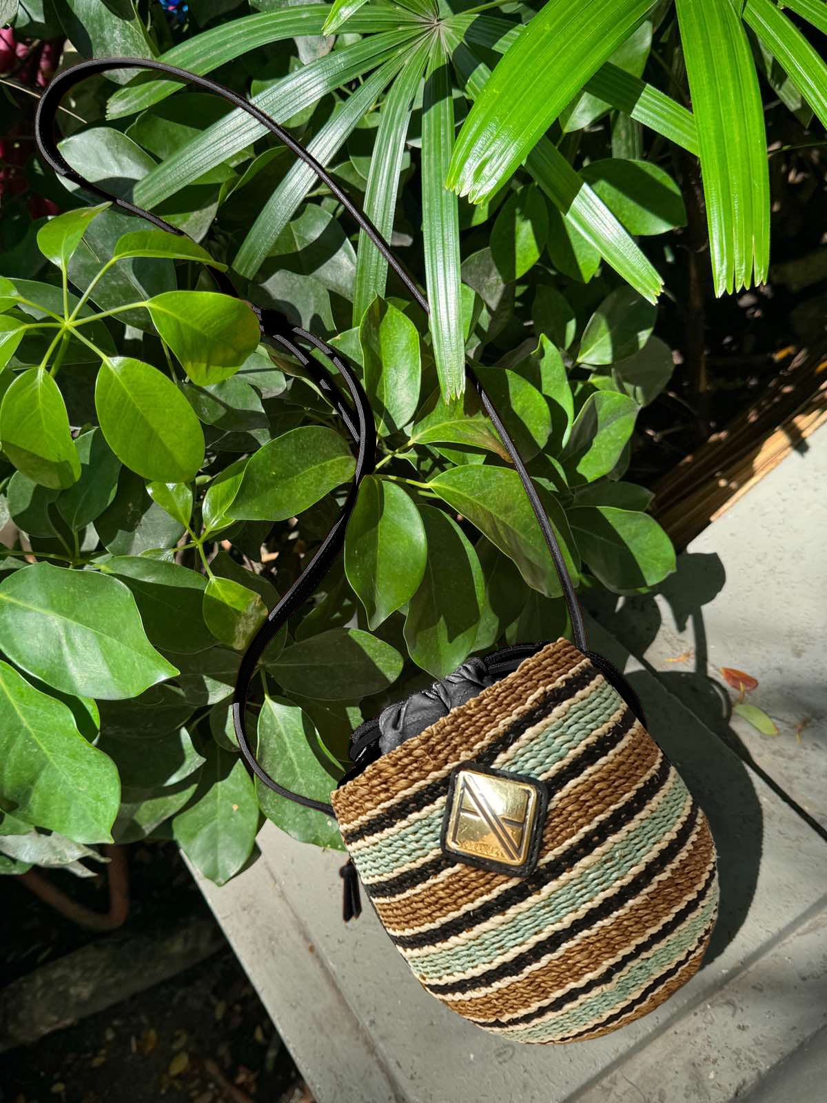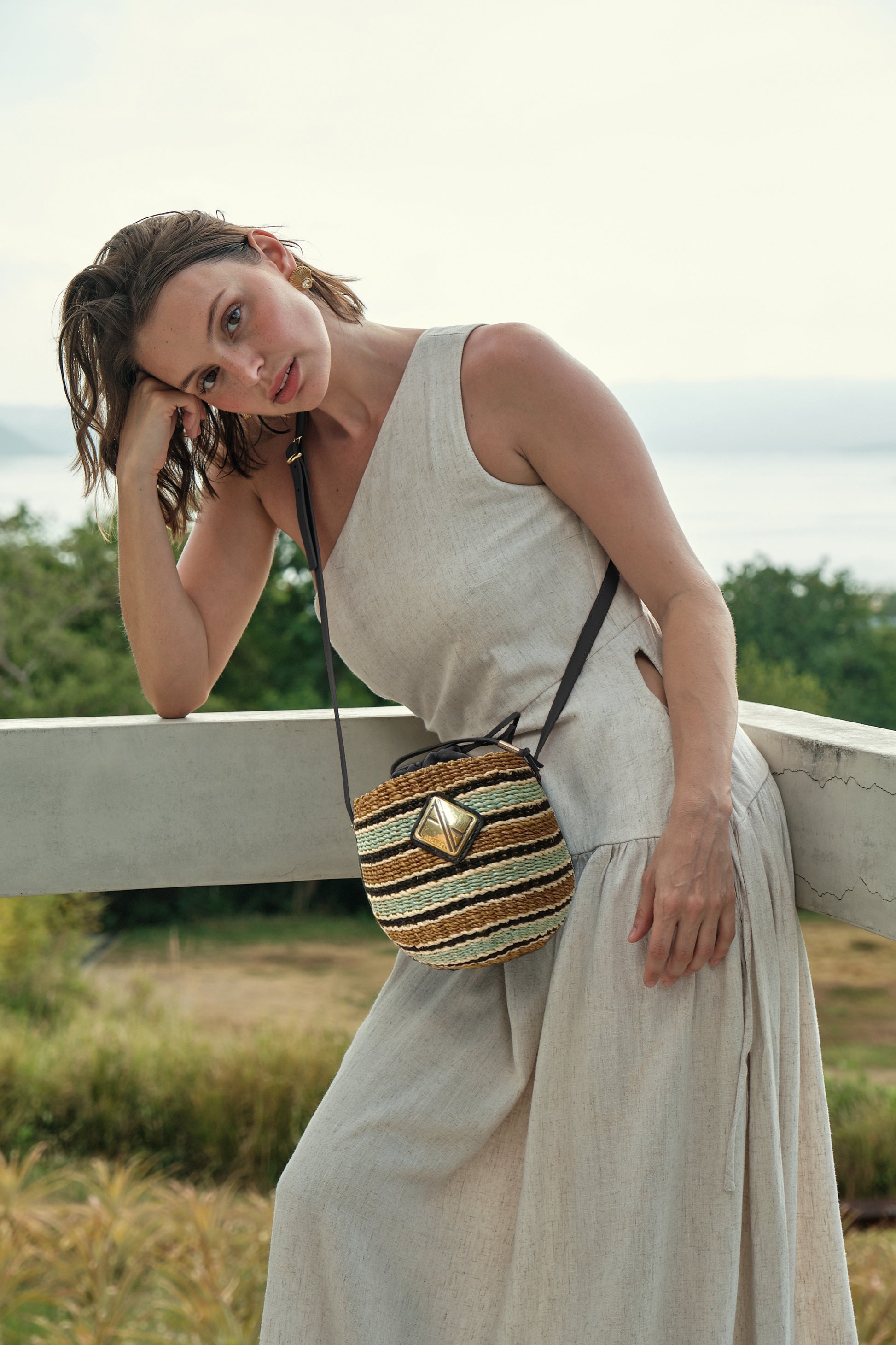 The Carrie Sling is a mini version of the best-selling ARANAZ tote. Made with finely woven abaca and genuine leather long strap. Gold logo hardware. In this latest version, we've updated it with a drawstring closure. Perfect for carrying just the essentials.