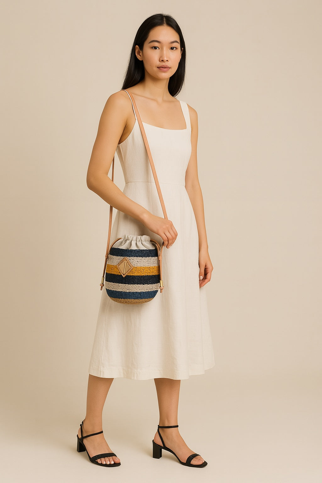 The Carrie Sling is a mini version of the best-selling ARANAZ tote. Made with finely woven abaca and genuine leather long strap. Gold logo hardware. In this latest version, we've updated it with a drawstring closure. Perfect for carrying just the essentials.