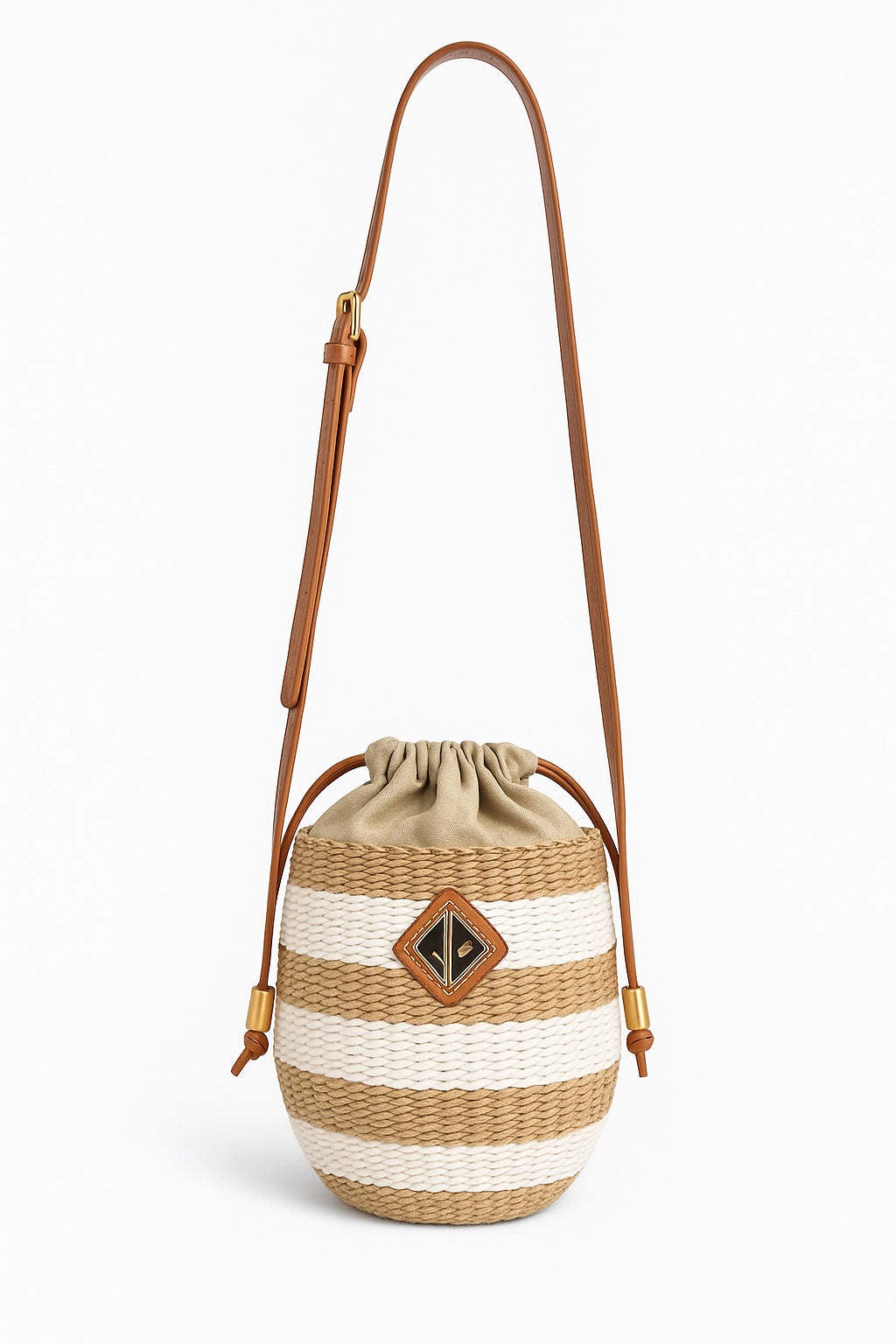 The Carrie Sling is a mini version of the best-selling ARANAZ tote. Made with finely woven abaca and genuine leather long strap. Gold logo hardware. In this latest version, we've updated it with a drawstring closure. Perfect for carrying just the essentials.