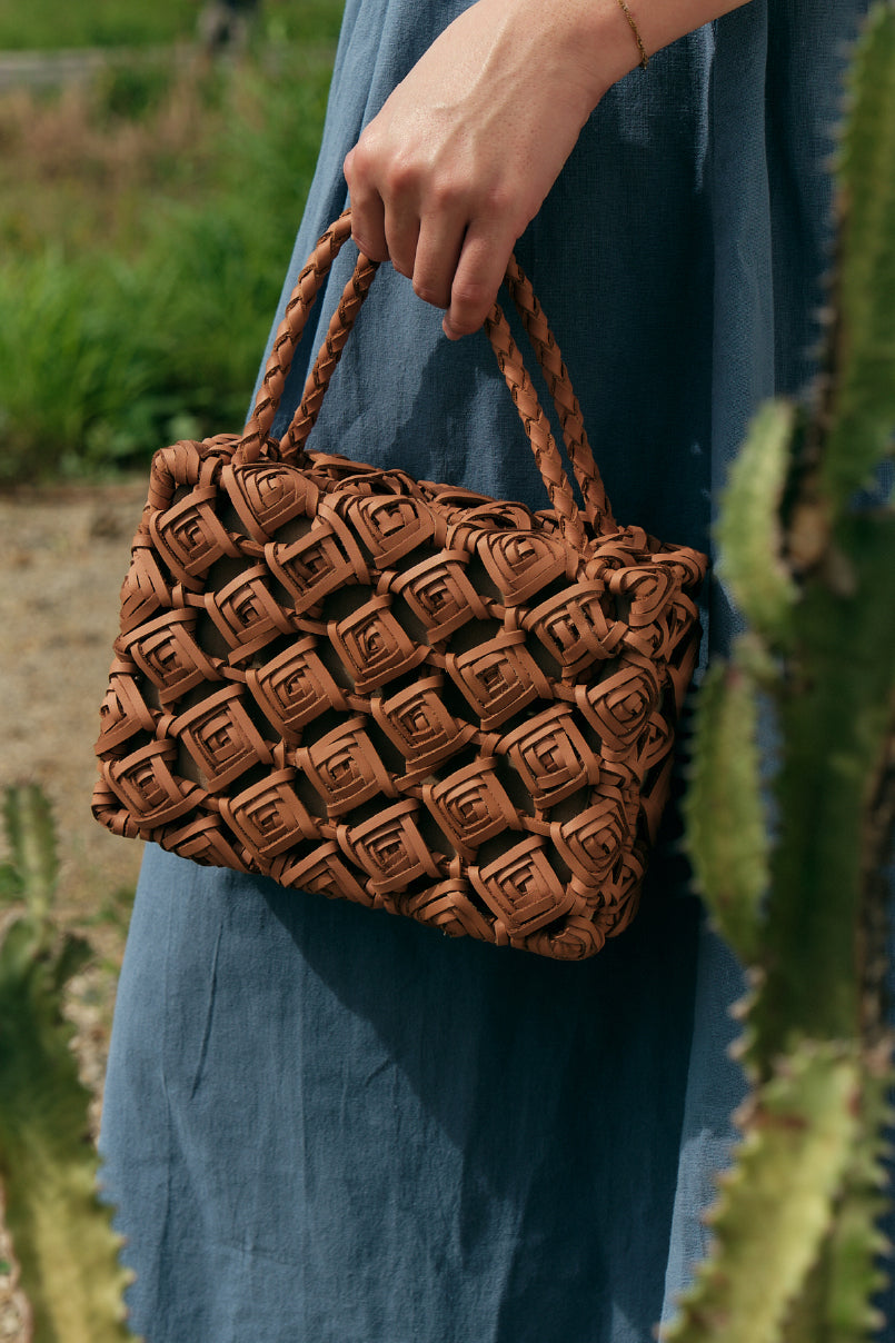 This Diamond Handbag features a refined leather handwoven design crafted into elegant diamond shapes. The meticulous weaving technique adds texture and visual depth, creating a sophisticated accessory that complements both formal and casual ensembles with timeless style.