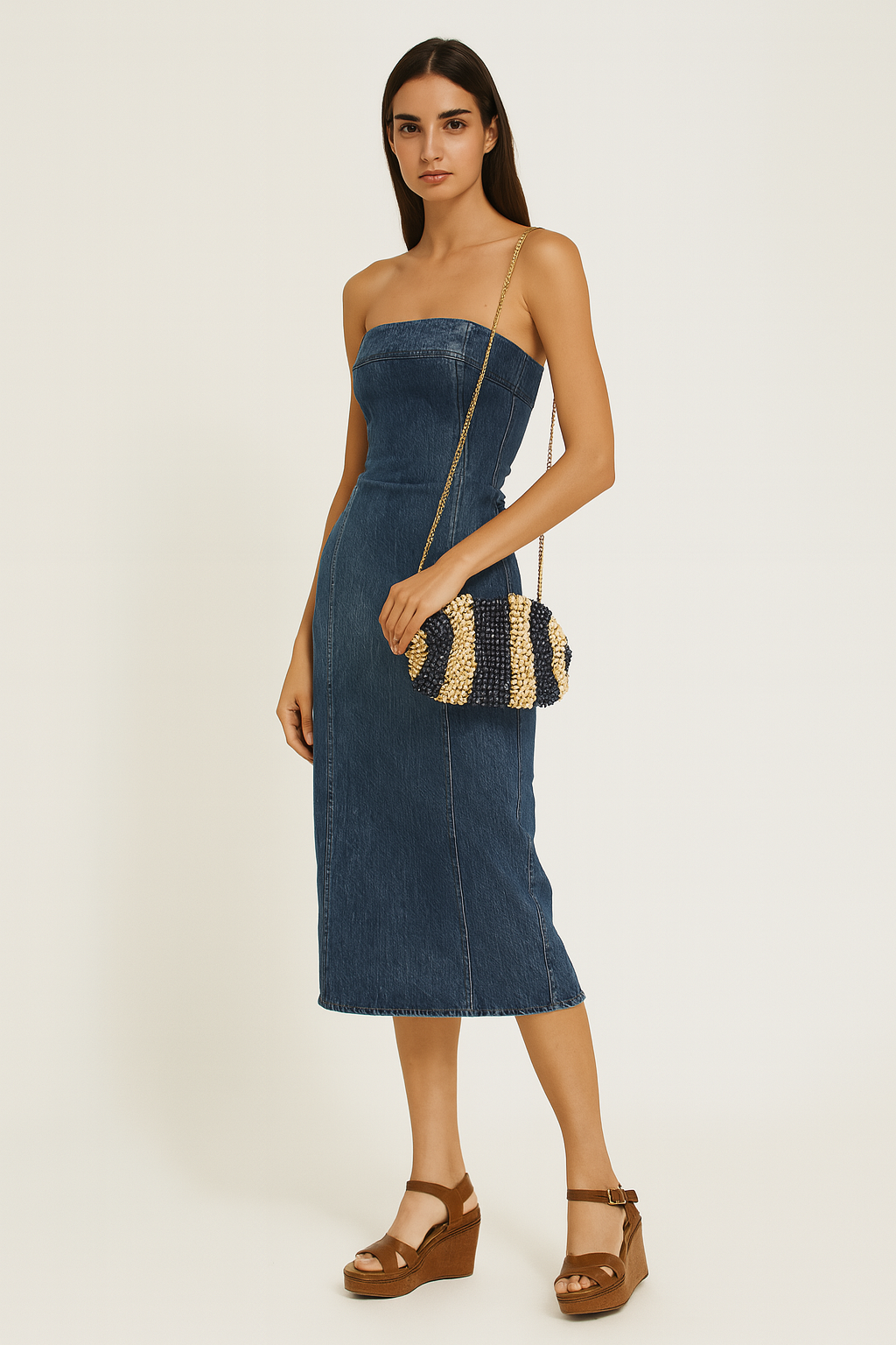 Crafted to gracefulness, the Half-Moon Bag is a captivating accessory. Boasting a half-moon-shaped wooden bead clutch, this bag is perfect for any occasion. Outfitted with an elegant removable chain strap, this bag lends an air of sophistication to any ensemble.