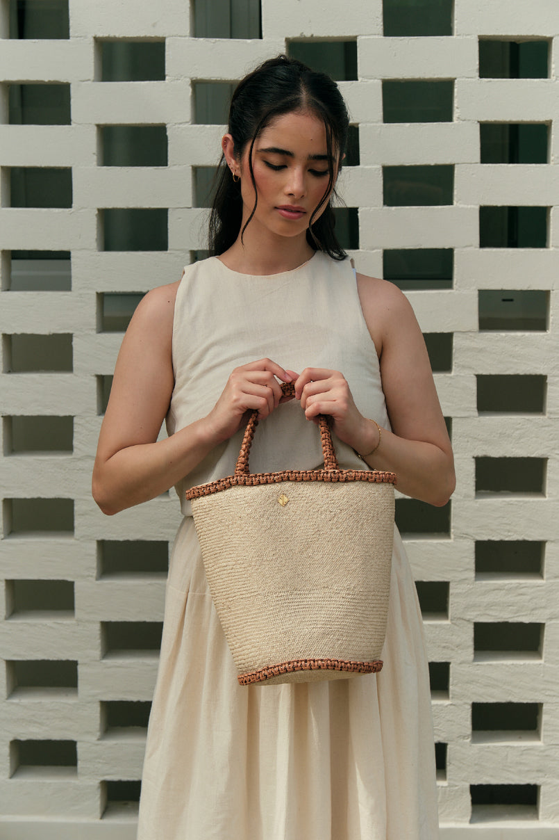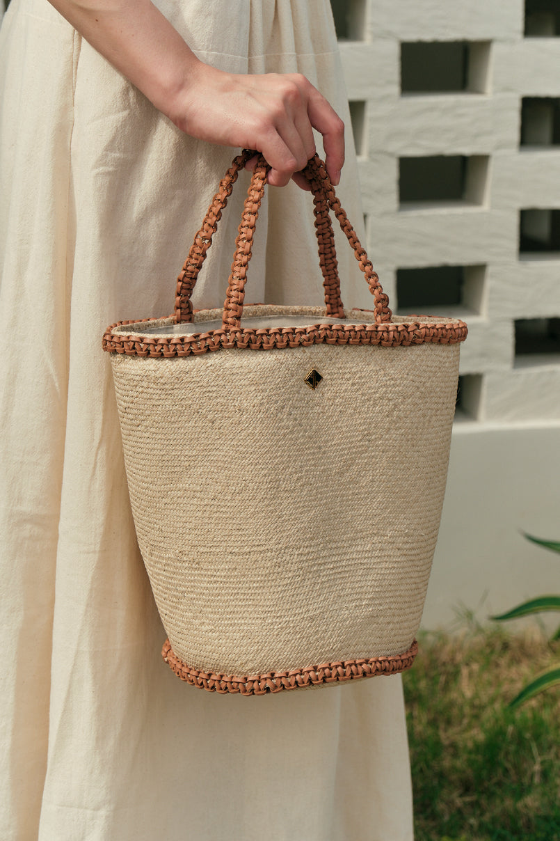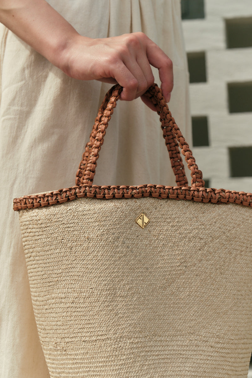 Elevate your style with the Johana handbag, expertly crafted from natural braided raffia and accented with finely detailed braided leather. This sophisticated accessory balances organic texture with refined craftsmanship, making it perfect for both casual outings and elegant occasions. Its sturdy construction ensures lasting beauty and practicality, while the distinctive braided details add a touch of artisanal charm to your ensemble.