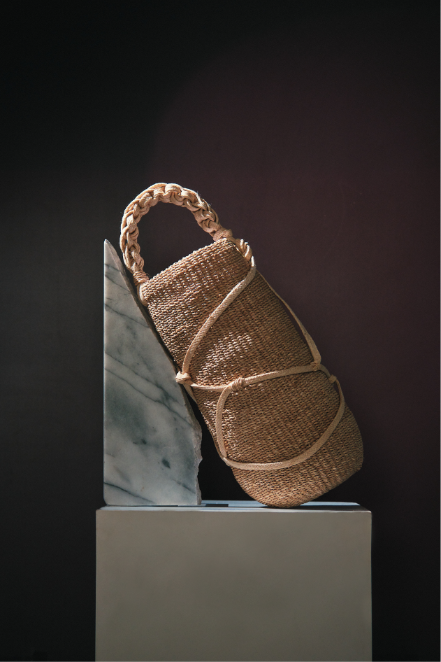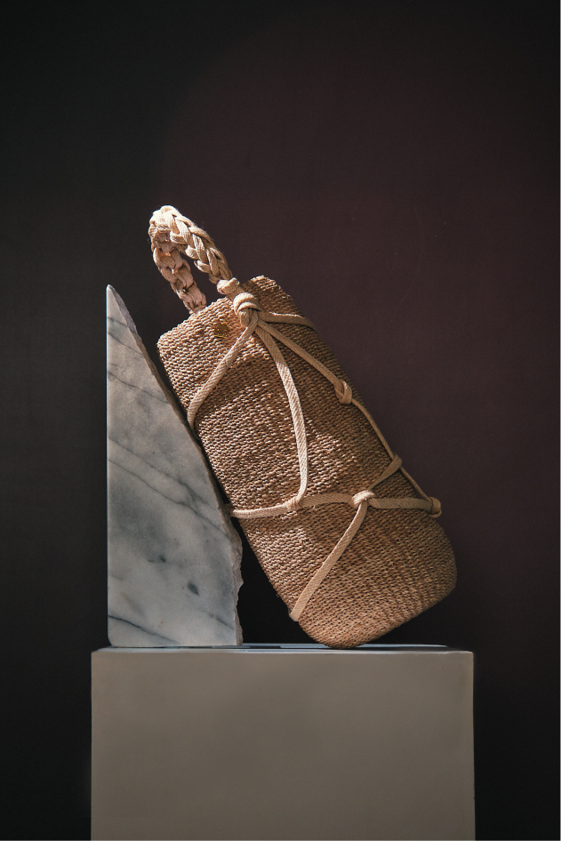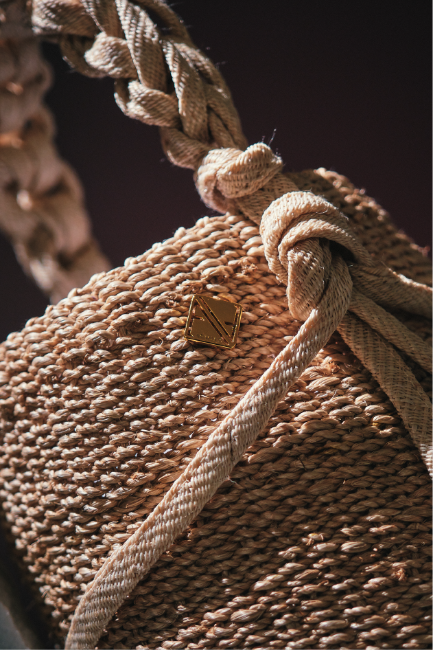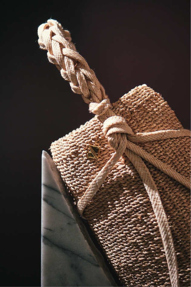 Introducing the Rosanna Nudo: a sophisticated handbag that boasts a distinctive cylindrical shape and exquisite t'nalak handle design. Elevate your style with this chic and exclusive accessory that combines fashion and art in one luxurious piece.