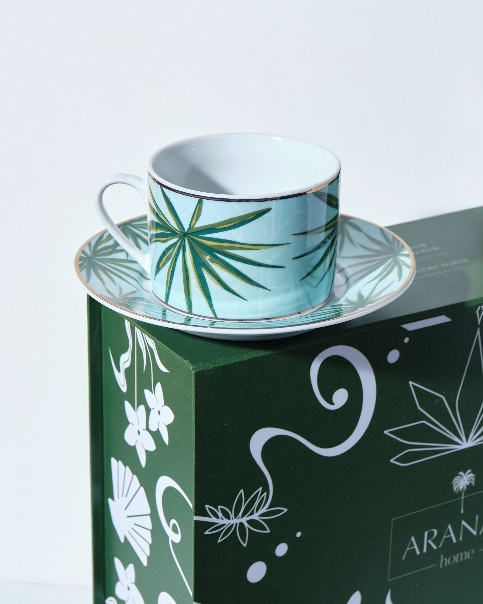 A cup and saucer that features unique Solihiya White prints that can sure brighten up your cup of morning coffee or afternoon tea. Comes in a set of 4.